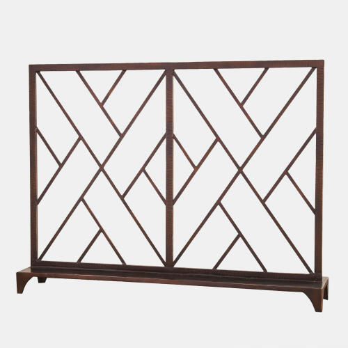 Chinoise Fret Fireplace Screen-Bronze