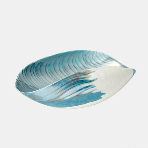 Ivory Turquoise Feather Swirl Folded Bowl