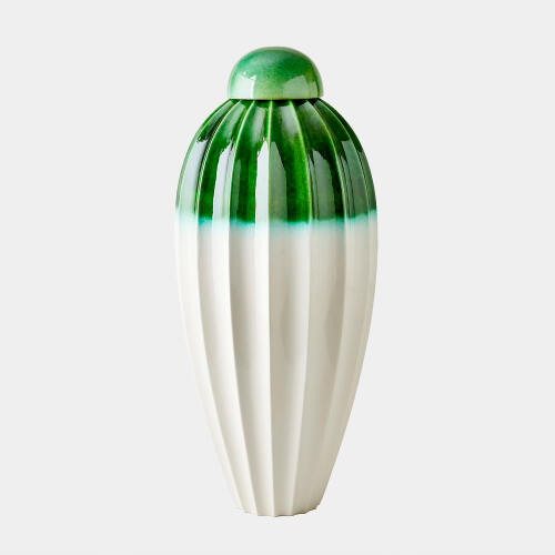 Fluted Jar w/Lid-Emerald-Lg