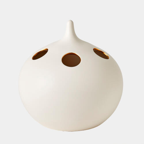 Oh No Vase-Matte White/Gold Rim