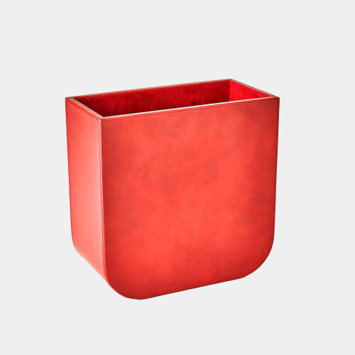 Radius Edge Leather Wastebasket-Deep Red