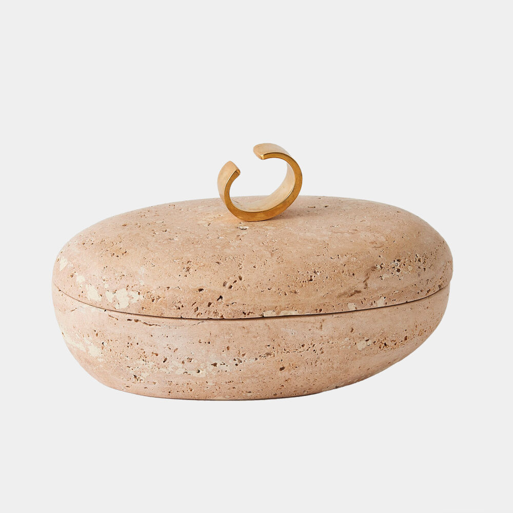 Caillou Lidded Pot-Travertine-Sm