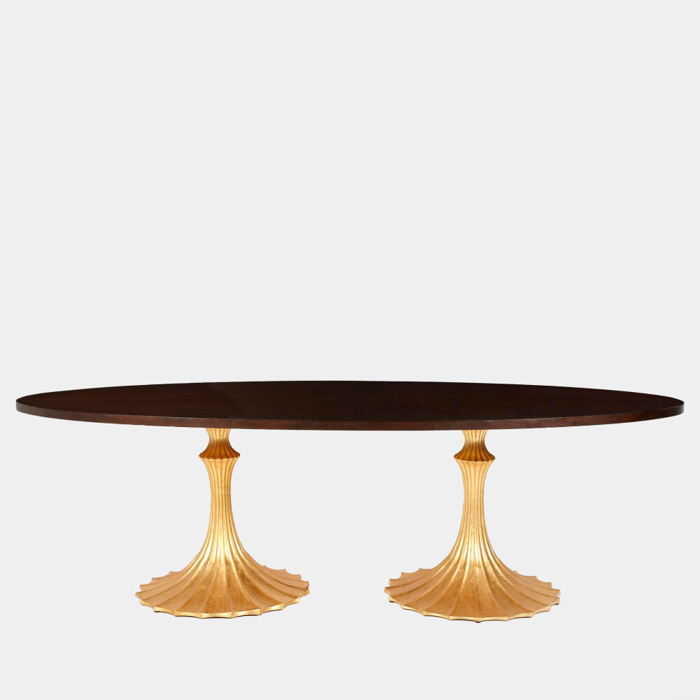 Flute Table 96" Walnut Top w/26" Gold Leaf Base