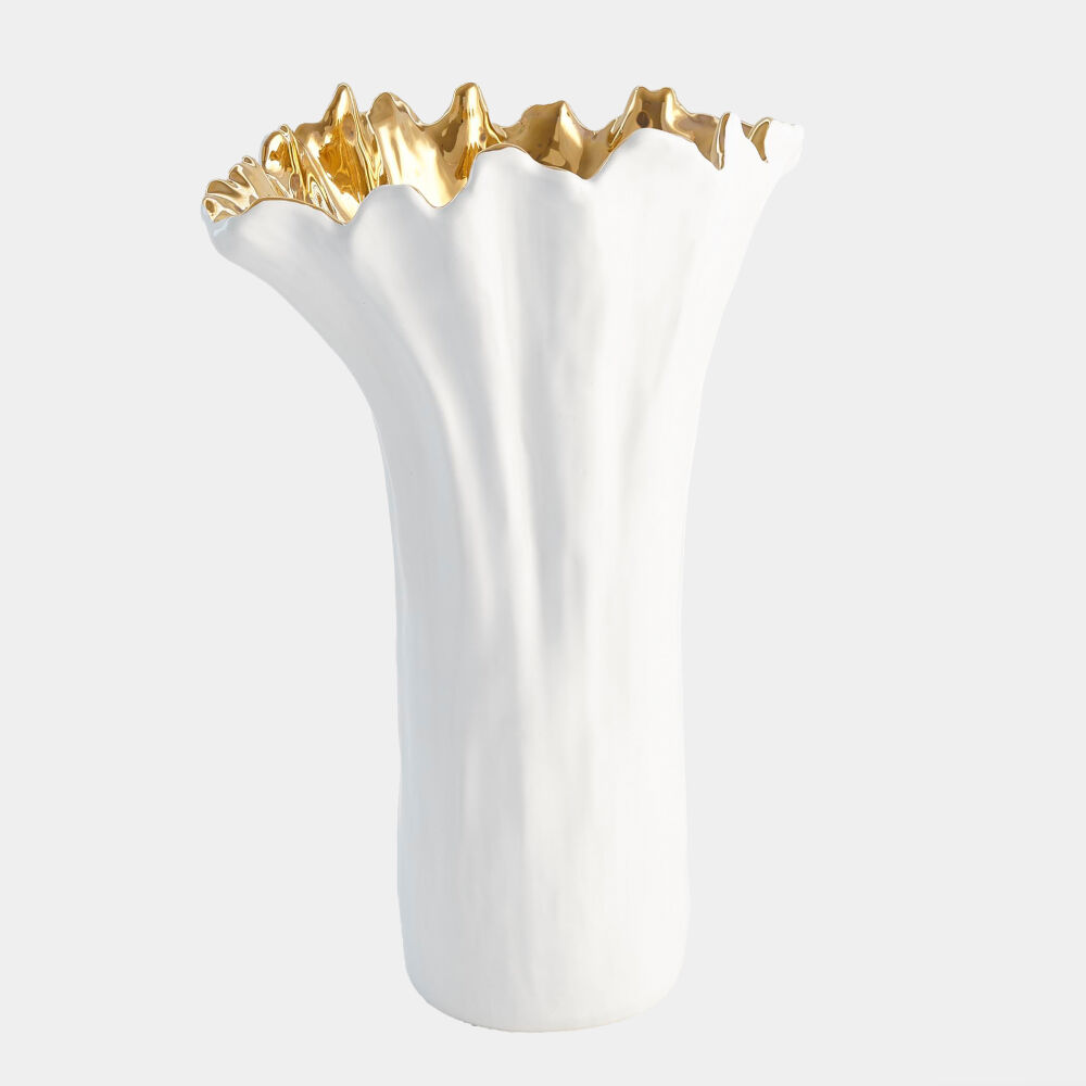 Organic Wave Tall Bowl-White/Gold