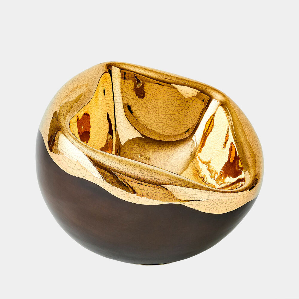 Squished Bowl-Gold Crackle