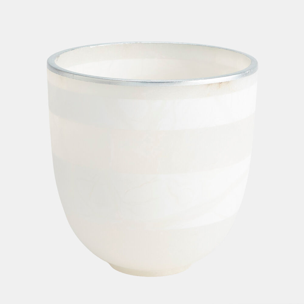 Striped Alabaster Bowl-White/Silver