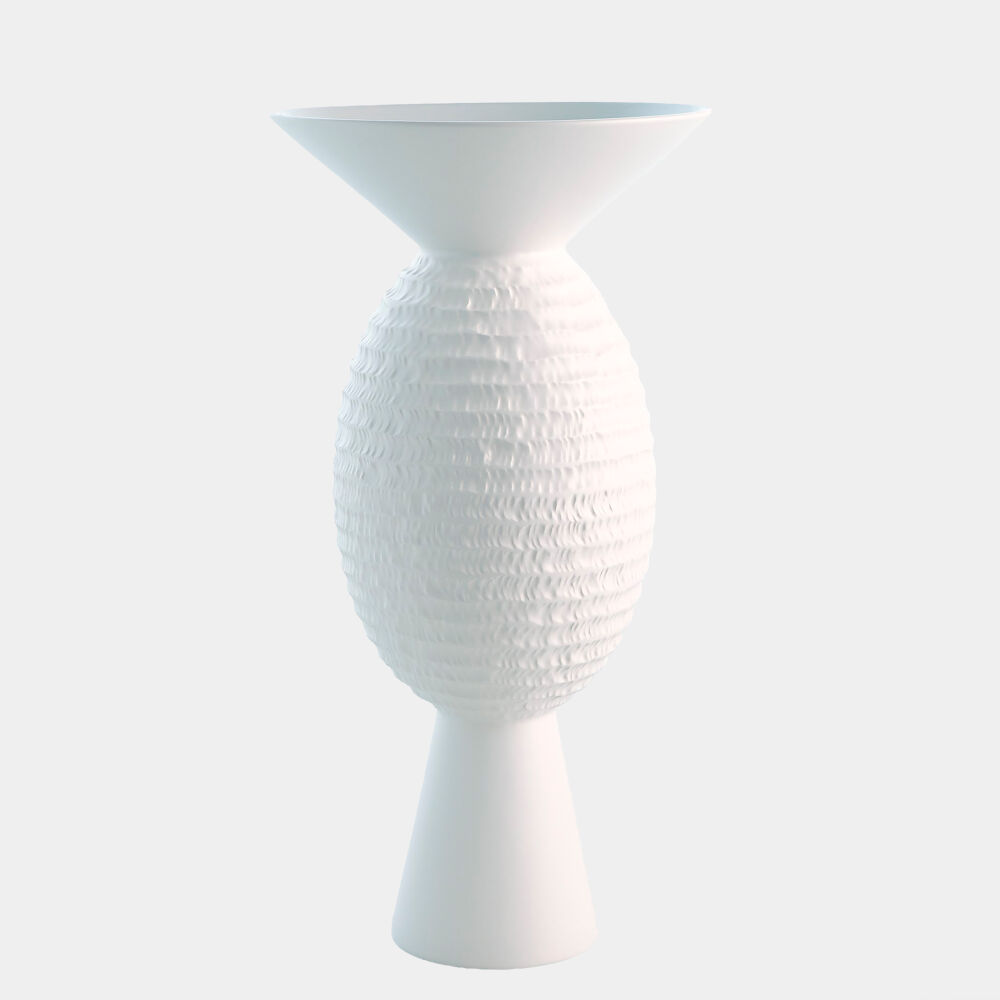 Wide Chiseled Orb Vase-Matte White